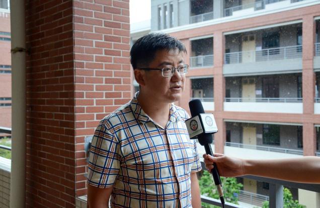 图3:石洪艾老师参加青教赛决赛现场 图4:徐应祥老师接受赛后采访