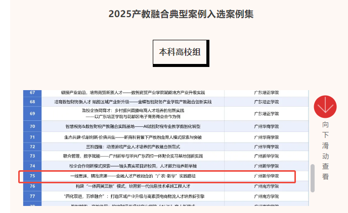 近日,2025年产教融合典型案例名单公布,我院肖宇航老师主持的《“一线贯通,精准滴灌”——金融人才产教融合的“广农-新华”实践路径》成功入选。充分彰显了我院在金融专业产教融合领域的创新实践与显著成效。本次评选中,我校共有三项案例入选,我院案例为经贸学科领域唯一入选案例。